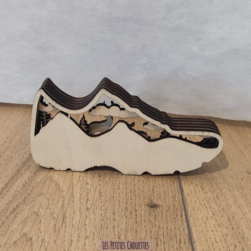 Déco Chaussure de randonnée en Bois Multicouches – Décoration Forêt en Bois Découpé