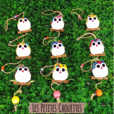 Cette jolie suspension est composée de 3 chouettes de 7 cm avec un tissu Coccinelles.